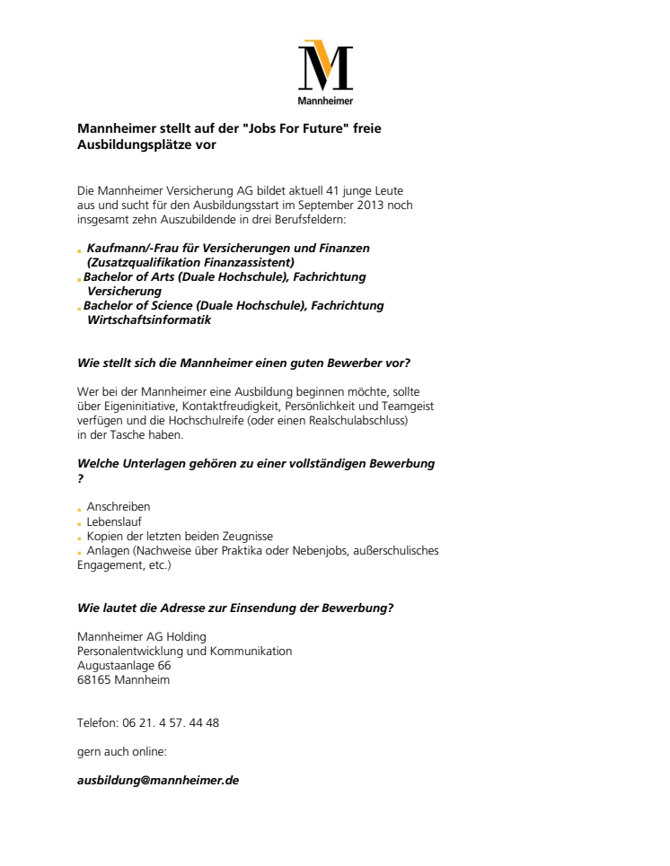 Mannheimer stellt auf der "Jobs For Future" freie Ausbildungsplätze vor