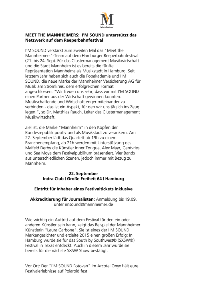 MEET THE MANNHEIMERS: I'M SOUND unterstützt das Netzwerk auf dem Reeperbahnfestival