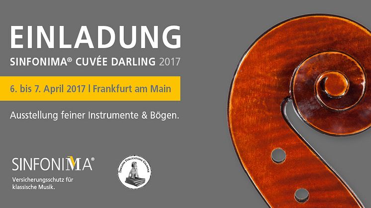 Dr. Andy Lim, in der Branche bekannt als Verleger der "Darling Publications" und SINFONIMA führen zum ersten Mal die gemeinsame Veranstaltung "SINFONIMA CUVÉE DARLING2017" in Frankfurt durch. Diese ist als Plattform für nationale und internationale Bogen- und Geigenbauer gedacht, ihre geschaffenen Schätze zu präsentieren und neue Kontakte zu knüpfen.