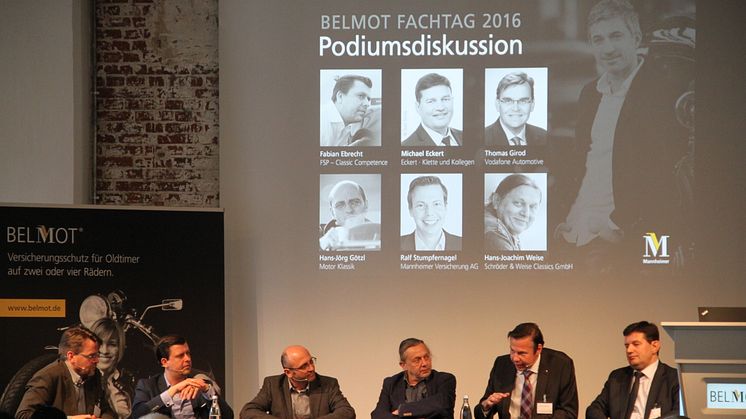 Anschließend widmeten sich die Referenten gemeinsam mit Hans-Jörg Götzl, Chefredakteur Motor Klassik und Hans-Joachim Weise, Geschäftsführer Schröder & Weise Classics GmbH in einer von BELMOT-Markenmanager Ralf Stumpfernagel moderierten Podiumsdiskussion möglichen Ansatzpunkten, wie Diebstahl und Erfahrungen mit Fälschungen verhindert werden können. "Es wird gefälscht, dass sich die Balken biegen", fasste Weise den bisherigen Tag und dessen Erfahrungen zusammen. Gemeinsame Datenbanken über gefälschte Fahrzeuge und Fahrzeugteile, einen regelmäßigen Austausch innerhalb der Szene, z.B. in Wissenstransferveranstaltungen wie dem BELMOT Fachtag sowie die Sensibilisierung der Branche z.B. auch durch einen kritischeren Umgang der oldtimerrelevanten Themen in großen Nachrichtenmedien, seien äußerst wichtig. Derzeit berichteten große Tageszeitungen lediglich über den Glanz der Branche, jedoch nicht über deren Probleme. Das müsse sich ändern, forderte Fabian Ebrecht, ebenfalls Leiter von FSP-Classic Competence. Außerdem sei die lückenlose Dokumentation nachgefertigter und verbauter Teile eines Fahrzeugs unbedingt erforderlich, forderte Götzl. Darin waren sich alle Diskussionsteilnehmer einig.