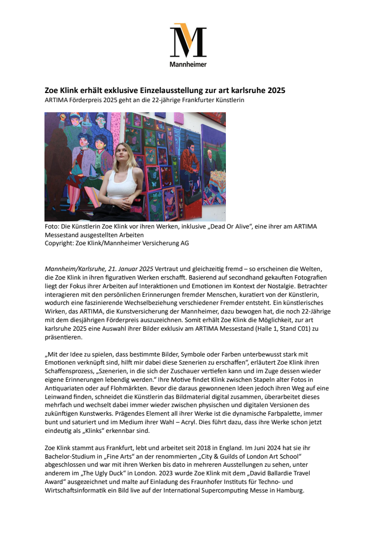 • Pressemeldung: Zoe Klink erhält exklusive Einzelausstellung zur art karlsruhe 2025